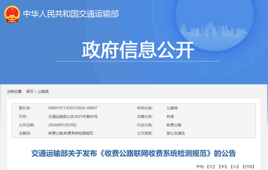 《收費(fèi)公路聯(lián)網(wǎng)收費(fèi)系統(tǒng)檢測(cè)規(guī)范》(JTG/T 63112025),作為公路工程推薦性行業(yè)標(biāo)準(zhǔn),自2026年4月1日起施行。