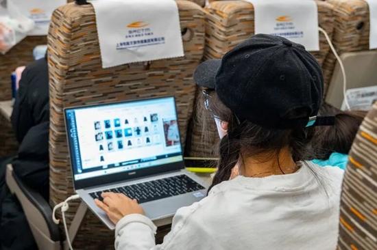 值得一提的是,G25次列車的3號車廂是靜音車廂。車廂內(nèi),列車員持提示牌往返巡視,不少旅客專注電腦辦公。靜謐舒適的空間里,工作與出行從容相融。