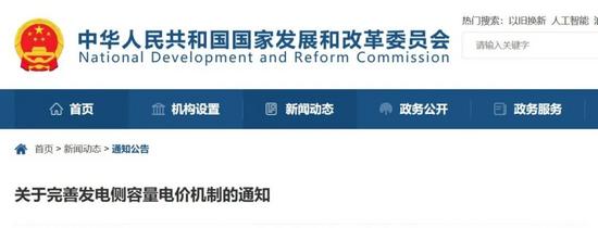 完善發(fā)電側(cè)容量電價(jià)機(jī)制的通知