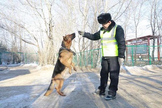 這樣的應(yīng)急處置對他們而言已是默契十足。在閆國忠看來,虎子不僅是工作伙伴,更是精神慰藉。每次值班,他都會換著花樣給虎子帶美食:大骨頭、牛肉、自制麻花……這些簡單的心意,讓虎子越發(fā)黏著閆國忠。