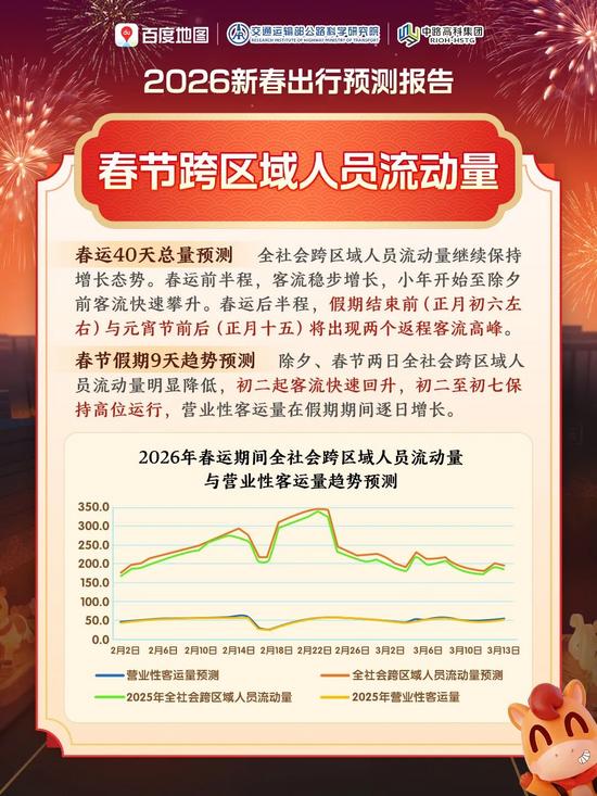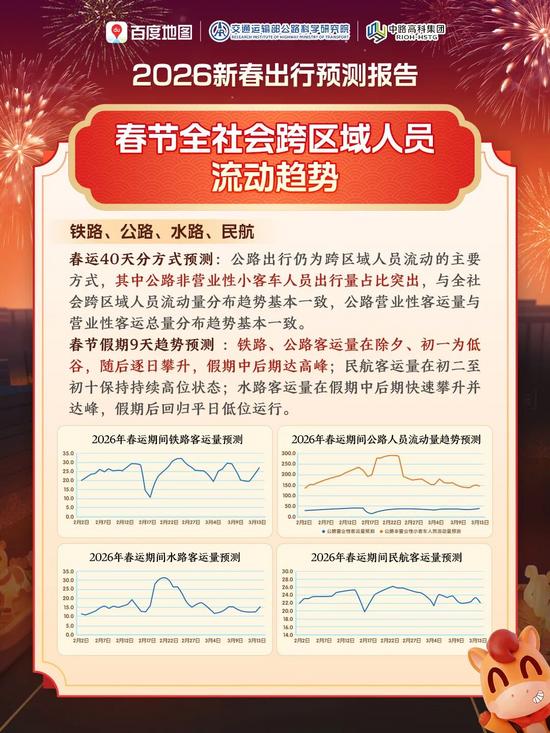 公路院、中路高科集團公司聯(lián)合交通運輸部路網(wǎng)監(jiān)測與應(yīng)急處置中心、百度地圖,共同發(fā)布《2026新春出行預(yù)測報告》,用數(shù)據(jù)為你劃重點。