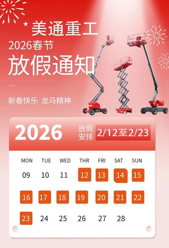 過去一年,我們如同我們摯愛的高空機械行業(yè)一樣——扎根堅實,臂展凌云。在挑戰(zhàn)中穩(wěn)步前行,于創(chuàng)新中蓄力攀升。每一份訂單的交付,每一次技術的突破,每一程服務的抵達,都凝聚著您的信賴與我們的汗水。是大家的攜手并肩,讓我們在高質量發(fā)展的軌道上行穩(wěn)致遠。