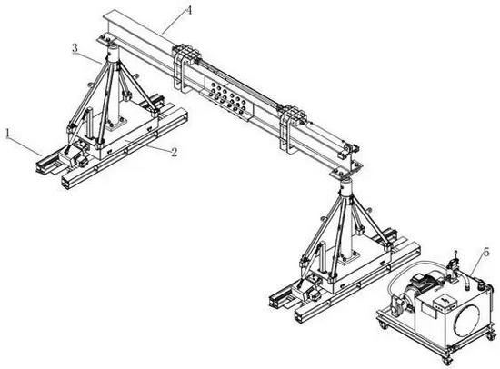 專利摘要顯示,發(fā)明公開一種模塊化組裝式液壓頂升門式起重機,包括:軌道裝置,包括左軌道和右軌道;行走裝置,其數(shù)目為兩個,分別可移動設(shè)于左軌道和右軌道上,包括動力單元和行走車,所述動力單元可置換地連接于所述行走車上,用于驅(qū)動行走車沿著所述軌道裝置移動;支撐裝置,可拆卸設(shè)于所述行走車上;橫梁,可拆卸設(shè)于所述支撐裝置上;其中,所述軌道裝置、行走裝置、支撐裝置和橫梁均為模塊化結(jié)構(gòu),能夠根據(jù)需要進(jìn)行適配性調(diào)整組裝,所述動力單元相對軌道裝置的驅(qū)動摩擦力可調(diào)節(jié)。該起重機能夠在高樓層室內(nèi)及其他空間受限的場景高效便捷地完成人工安裝、吊裝作業(yè)及拆卸轉(zhuǎn)場,且驅(qū)動摩擦力可精準(zhǔn)高效調(diào)節(jié),能夠?qū)崿F(xiàn)高效安全的起吊負(fù)載。