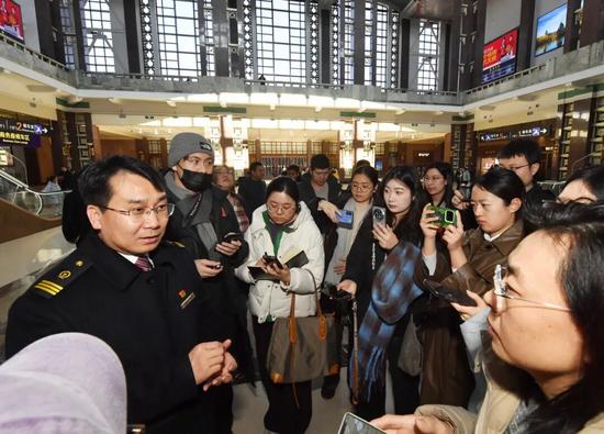 來自經(jīng)濟(jì)參考報、《人民鐵道》報業(yè)有限公司、中國交通報等25家行業(yè)媒體的40余位記者參加了啟動儀式。活動結(jié)束后,記者們走進(jìn)北京站候車室、站前廣場等一線場所,開展春運(yùn)現(xiàn)場采訪,正式拉開本年度“新春走基層”的采訪序幕。