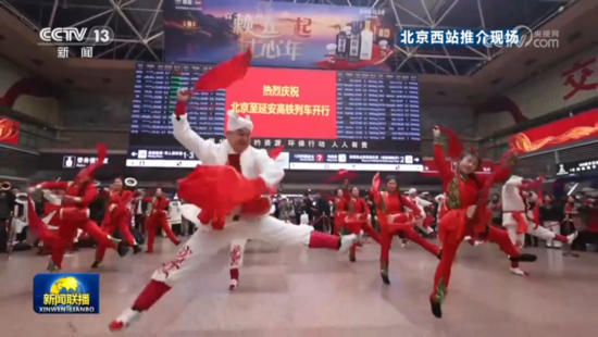 總臺(tái)央視記者 鄭連凱:現(xiàn)在的時(shí)間是1月26日早上7點(diǎn)30分,延安的天剛蒙蒙亮,腰鼓隊(duì)隊(duì)員已經(jīng)趕到延安站,稍后他們要搭乘延安開往北京的G359次首發(fā)列車。