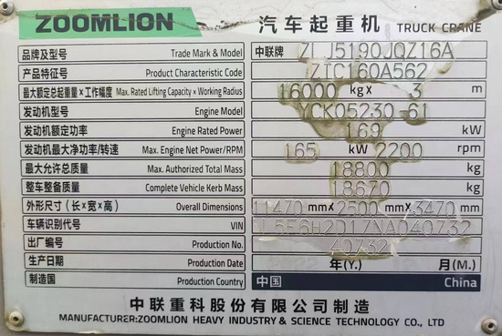 中聯(lián)16噸汽車起重機(jī)、五節(jié)臂、國(guó)六排放、現(xiàn)狀出售。40732