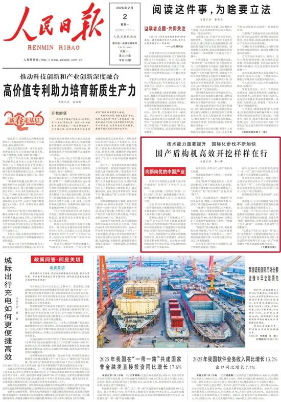 2月2日,《人民日報》頭版以《國產盾構機高效開挖樣樣在行》為題,聚焦點贊中國盾構機。報道以 “國產盾構技藝高超、練就獨門絕技、備受全球青睞” 為主線,通過全球最大豎井掘進機“啟明號”始發(fā)、世界首創(chuàng)可變徑盾構“變徑一號”應用、以及超大直徑智能盾構“姊妹花”出海等典型案例,生動展現(xiàn)了中國中鐵在高端裝備制造領域實現(xiàn)的全方位突破與引領,彰顯了其以自主創(chuàng)新踐行“三個轉變”、推動高質量發(fā)展的雄厚實力與全球影響力。