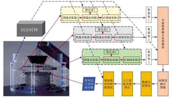 摒棄傳統(tǒng)進料-探測-剔除的臥式線性流程,設(shè)計頂部進料-中部環(huán)形探測-底部分區(qū)剔除的立式循環(huán)結(jié)構(gòu)。進料模塊采用3層傾斜式智能抖料機構(gòu),通過離散元法(DEM)仿真優(yōu)化篩板孔徑與排布,實現(xiàn)煤流均勻分布;探測模塊采用環(huán)形平行布局,將X光射線源與探測器環(huán)繞于直徑2.8~3.2 m的立式煤流通道外側(cè),探測覆蓋角度360°,橫向占用空間較臥式設(shè)備減少60%;剔除模塊集成500個MAC高速電磁閥,呈環(huán)形陣列分布于探測模塊下方,通過流場仿真優(yōu)化氣閥噴氣角度與壓力,確保矸石剔除準確率達98%以上。設(shè)備整體尺寸控制為直徑小于3.2 m、高度小于3.5 m,可通過井下副井運輸,適配80%以上的受限空間場景。
