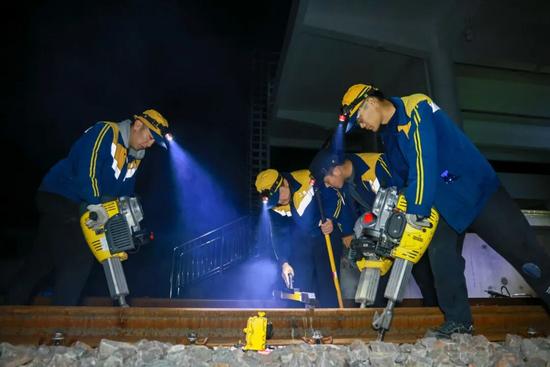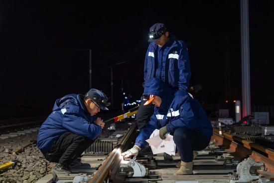 “我的工作是在‘天窗'時(shí)間巡視檢查線路、道岔?!眲⑽膹V說。春運(yùn)期間客流大,列車開行密集,他經(jīng)常要和工友們?cè)谏钜贡几艾F(xiàn)場(chǎng),利用軌檢小車進(jìn)行監(jiān)測(cè),確保設(shè)備保持最佳狀態(tài)。