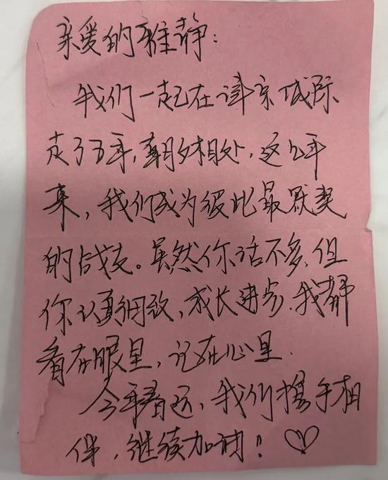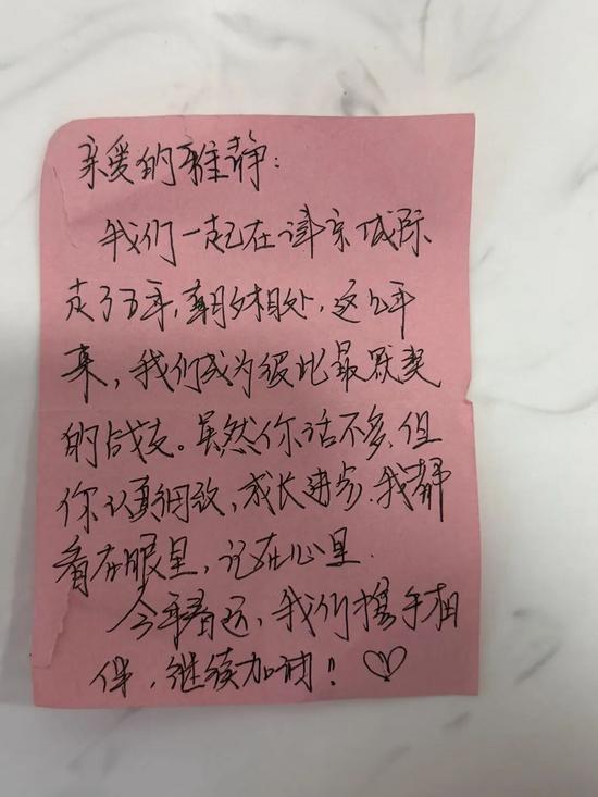 今年是列車長(zhǎng)李新和列車員高雅靜一起入路的第14年。兩個(gè)人在5年前進(jìn)入同一班組,相互支持,配合默契,成為彼此的最佳搭檔。又是一年春運(yùn),李新把心里話寫(xiě)在小紙條上送給高雅靜,約定兩個(gè)人繼續(xù)加油,用溫暖服務(wù)守護(hù)旅客回家。