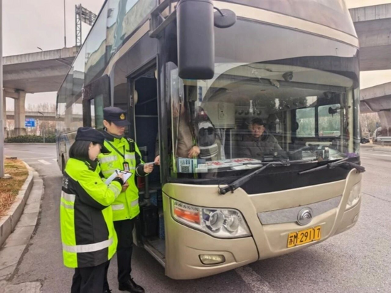 江蘇交通運輸護航群眾出行,筑牢安全屏障。交通執(zhí)法支隊與公安交警聯(lián)動,在轄區(qū)內(nèi)全面啟動“護春運”聯(lián)合執(zhí)法行動。執(zhí)法人員現(xiàn)場對客運車輛逐輛檢查,并提醒乘客系好安全帶。揚州交通執(zhí)法人員在客流高峰時段對大運河博物館、客運樞紐周邊及重點路段的客運包車、班車開展路檢路查,嚴查非法運營行為。泰州靖江市交通運輸局貨運中隊聯(lián)合公安部門對危險品運輸企業(yè)開展春運安全檢查。