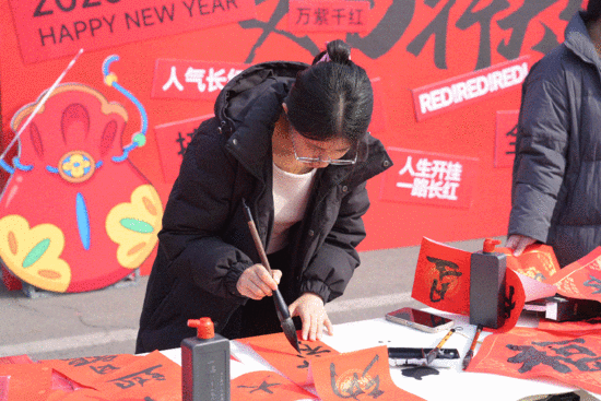 本次活動(dòng)設(shè)于山推趕大集現(xiàn)場(chǎng),便捷的設(shè)置讓往來(lái)職工無(wú)需特意奔走,便能輕松領(lǐng)取專屬“文化年貨”,把新春福氣帶回家。活動(dòng)現(xiàn)場(chǎng)暖意融融、熱鬧非凡,特別邀請(qǐng)到山推退休職工與在崗書法愛(ài)好者并肩揮毫。職工們?nèi)齼沙扇厚v足觀賞、輕聲交流,精心挑選心儀的福字,臉上洋溢著幸福的笑容。此外,山推特制春聯(lián)與福字同步隨新春福利派送,確保這份真摯的新春祝福精準(zhǔn)送達(dá)每一位職工手中,讓暖意覆蓋全員。