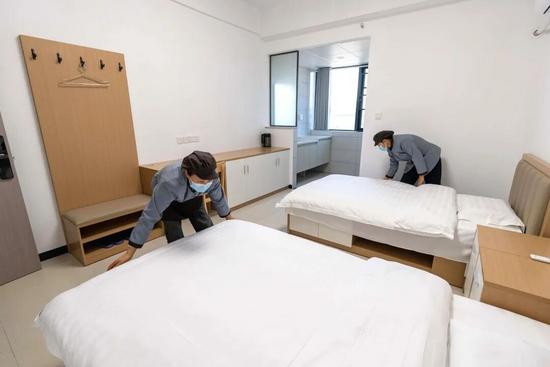 “上次爸媽來(lái)看我,我提前向單位和公寓申請(qǐng)后,公寓前臺(tái)給辦理了免費(fèi)入住探親房,省了去市里找酒店的錢和時(shí)間,我還能多跟爸媽待會(huì)兒,真的很暖心!”