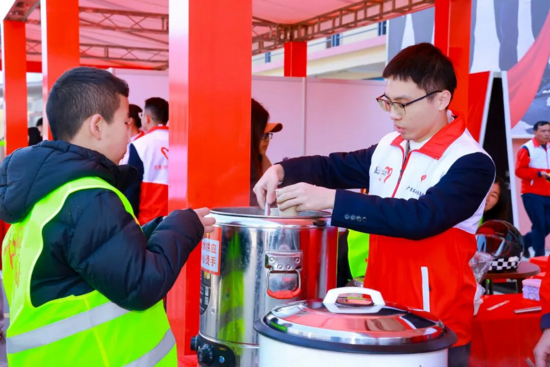 啟動儀式現(xiàn)場,中國石化集團公司黨組宣傳部部長于永生、廣東石油黨委書記馮東明、潤滑油公司副總經(jīng)濟師黎鋒等人共同為返鄉(xiāng)群眾發(fā)放“愛心福袋”。福袋內(nèi),反光背心、保溫杯、騎行雨衣組成的“返鄉(xiāng)三件套”兼顧安全與保暖,同時搭配專為長途出行定制的長城摩托車油,成為歸鄉(xiāng)人路上中的安心標(biāo)配。