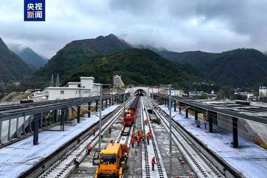 自鋪軌啟動以來,鋪架單位克服了秦嶺山區(qū)橋隧比高、地形復(fù)雜、交叉施工密集等重重挑戰(zhàn),在燕子坡隧道鋪軌階段,新型多功能長鋼軌牽引車在隧道內(nèi)創(chuàng)造了23小時優(yōu)質(zhì)高效鋪設(shè)長軌26公里的佳績,刷新了全國單日鋪軌紀錄。