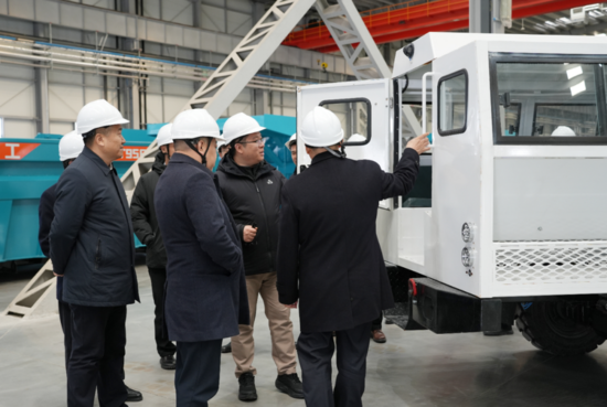 隨后,在郭棟總裁的陪同下,考察團實地觀摩寬體車產(chǎn)線的生產(chǎn)流程、工藝標準及質(zhì)量管控體系。在生產(chǎn)現(xiàn)場,考察團近距離查看寬體礦用自卸車、裝載機等核心產(chǎn)品的組裝、調(diào)試全過程,詳細了解產(chǎn)品的技術(shù)參數(shù)、生產(chǎn)效率、節(jié)能性能及市場應用情況。郭棟總裁介紹,目前公司寬體礦車、裝載機已實現(xiàn)核心部件自主研發(fā)、規(guī)模化生產(chǎn),憑借可靠的產(chǎn)品質(zhì)量、高效的作業(yè)性能,廣泛應用于國內(nèi)各大礦山、基建項目,獲得市場高度認可,彰顯了公司在高端裝備制造領(lǐng)域的核心競爭力。