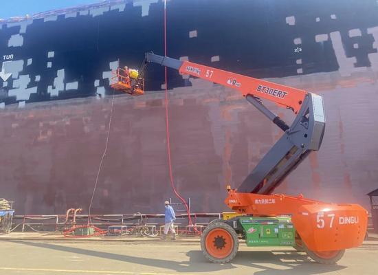 船舶,作為人類工業(yè)文明的集大成者,其龐大的身軀與復(fù)雜的曲面結(jié)構(gòu),對(duì)高空作業(yè)設(shè)備提出嚴(yán)苛要求,同時(shí)因其長(zhǎng)期受海水侵蝕,維保是核心命題。鼎力敏銳洞察行業(yè)痛點(diǎn),以高機(jī)智能平臺(tái)為載體,為船舶修造提供了一體化的綠色解決方案。