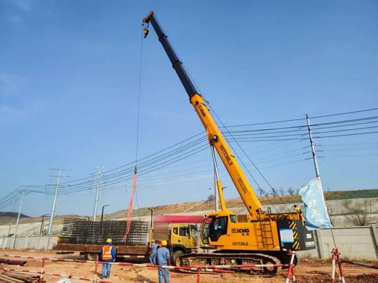 34.2米主臂、15米幅度工況下,XGTC30L5將單個5噸重的鋼筋籠,從運輸車輛上起,精準植入預定樁孔,一氣呵成。