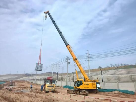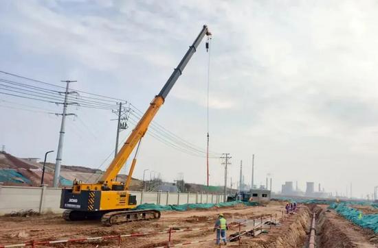 洛陽百萬噸聚乙烯項目基礎施工現(xiàn)場,XGTC30L5(30噸級)伸縮臂履帶起重機正承擔著關鍵工序——鋼筋籠吊裝。