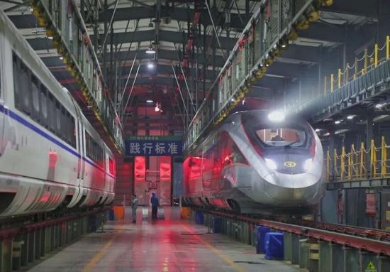 經(jīng)過一夜奮戰(zhàn),哈爾濱動車段哈爾濱西動車組運用所地勤檢一組累計完成32組動車一級修、12組機檢任務(wù)以及15組融冰除雪專項作業(yè)。面對春運大考,他們互相打氣、默契配合,護航鋼鐵巨龍安全行駛。