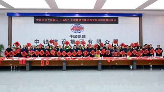 春節(jié)臨近,年味漸濃。2月8日,由中國(guó)美術(shù)家協(xié)會(huì)、陜西省文學(xué)藝術(shù)界聯(lián)合會(huì)主辦,中國(guó)文聯(lián)美術(shù)藝術(shù)中心、陜西省美術(shù)家協(xié)會(huì)承辦,中鐵建設(shè)協(xié)辦的“強(qiáng)基工程”——中國(guó)美術(shù)家協(xié)會(huì)“送歡樂(lè) 下基層”慰問(wèn)活動(dòng)走進(jìn)中鐵建設(shè)承建的西安東站。中國(guó)美協(xié)分黨組書(shū)記、駐會(huì)副主席屈健,中國(guó)鐵道建筑報(bào)社社長(zhǎng)、總編輯王利,集團(tuán)公司總經(jīng)理、黨委副書(shū)記趙向東,黨委副書(shū)記、工會(huì)主席王宏斌參加活動(dòng)。