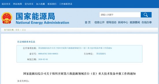 國(guó)家能源局綜合司關(guān)于組織開(kāi)展第六批能源領(lǐng)域首臺(tái)(套)重大技術(shù)裝備申報(bào)工作的通知