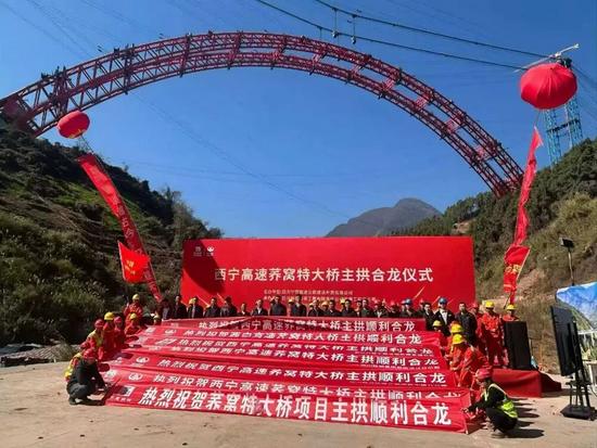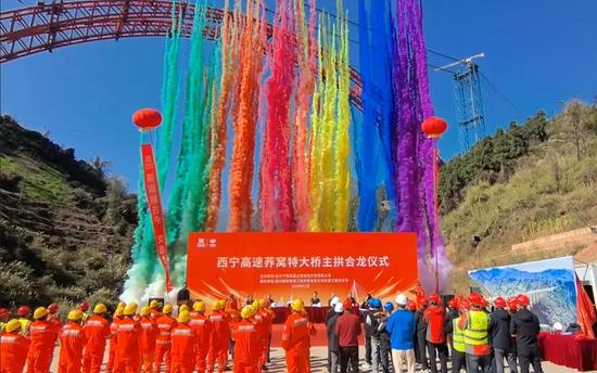 西寧高速蕎窩特大橋主拱合龍儀式現(xiàn)場