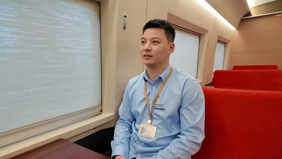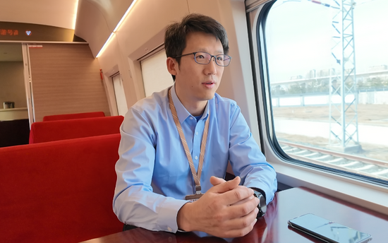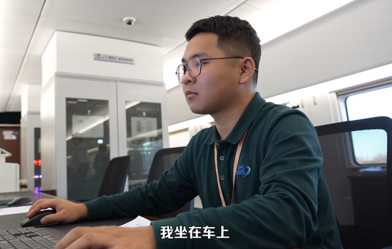 檢測人員分布在不同車廂,大部分時(shí)間專注地盯著屏幕,分析實(shí)時(shí)數(shù)據(jù),偶爾會(huì)和搭檔或鄰崗?fù)碌吐曈懻摗!拔覀兠抗?jié)車廂都是‘靜音車廂’?!睂O旭笑道。