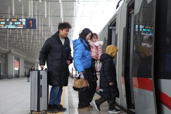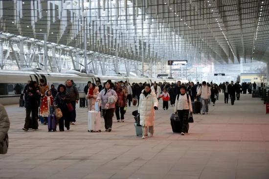 站臺上,一趟復(fù)興號列車緩緩啟動,開往北京。