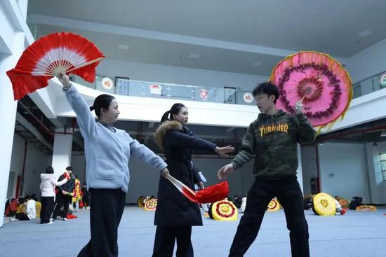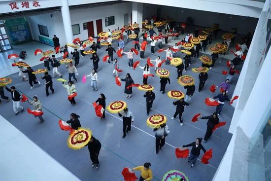 “鏘鏘,鏘鏘鏘”,以學(xué)生為主,近百人的表演隊正在排練“大場子”秧歌。茂騰騰的后生張成果舞得正歡,他搖動花傘頭,甩著兩臂膀,邁開步子扭,渾身使不完的勁兒。