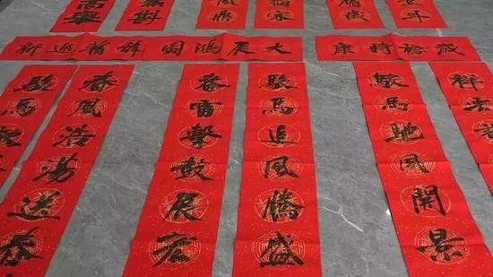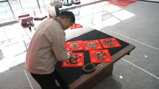 隨后,有書法特長的職工揮毫示范,筆走龍蛇間,一副副筆法流暢的春聯(lián)躍然紙上,引得現(xiàn)場陣陣稱贊。