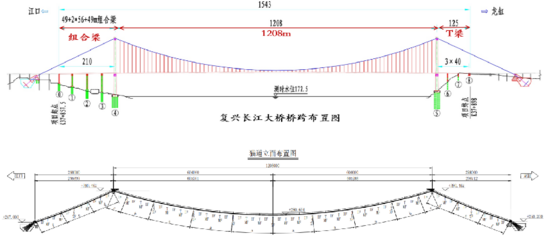 復(fù)興長(zhǎng)江大橋橋跨及貓道立面布置圖