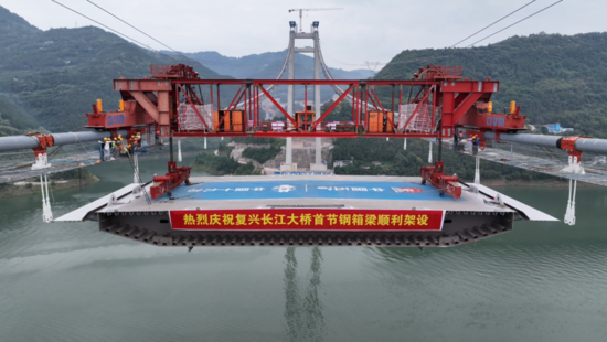復(fù)興長(zhǎng)江大橋首節(jié)鋼箱梁吊裝