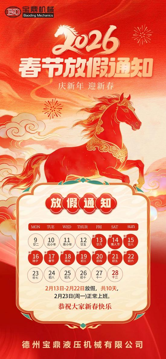 放假通知丨寶鼎機械恭祝大家馬年大吉!
