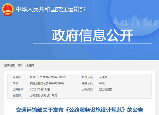 《公路服務(wù)設(shè)施設(shè)計(jì)規(guī)范》(JTG/T 3382-2026)的管理權(quán)和解釋權(quán)歸交通運(yùn)輸部,日常管理和解釋工作由主編單位交通運(yùn)輸部公路科學(xué)研究院負(fù)責(zé)。