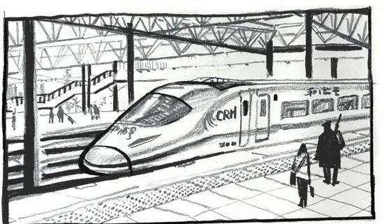 身旁的旅客有的刷著手機(jī),有的張望著檢票口,而李想正用繪畫把眼前的一幕幕,變成她奇妙旅途的生動注腳。