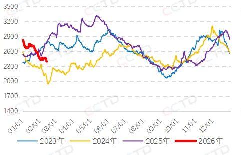 一方面,本周主產(chǎn)區(qū)多數(shù)民營煤礦已進(jìn)入春節(jié)假期,國有煤礦仍維持穩(wěn)定生產(chǎn),整體產(chǎn)量邊際有小幅收縮;受貨源不足以及發(fā)運(yùn)成本倒掛影響,港口調(diào)入量持續(xù)處于偏低水平;下游方面,終端采購仍以長協(xié)煤為主,但由于印尼政府削減煤炭生產(chǎn)配額,少數(shù)庫存偏低的終端也存在小批量補(bǔ)庫需求,在調(diào)入相對偏低的情況下,近日北方港口庫存再度加速下行。截至2月12日,環(huán)渤海港口庫存合計(jì)2395.8萬噸,較去年同期下降383.4萬噸。