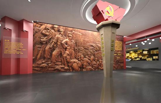 建設理念:“薪火永續(xù),傳承紅色基因”。展廳設計上具有磅礴大氣之感,符合建黨百年的氛圍,展廳中設置雕塑、場景還原等藝術設計,增強觀賞性。根據場地條件及展示內容投入觸摸一體機、投影、幻影成像等不同的聲光電創(chuàng)意設備,增強體驗感。
