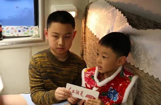 隔壁車廂內(nèi),一位穿著大花襖坎肩的男孩格外引人注目,他正和哥哥興奮地欣賞著窗外的景色?!拔姨貏e喜歡雪,想去漠河玩雪!”孩子笑著說,身旁的哥哥笑著補(bǔ)充:“我想去祖國(guó)最北端的界碑拍照,感覺會(huì)很有成就感。”