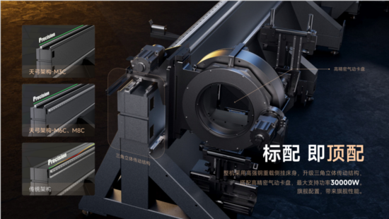 1、高強(qiáng)鋼重載側(cè)掛床身:提供無與倫比的結(jié)構(gòu)剛性與抗振性,最大支持功率30000W;