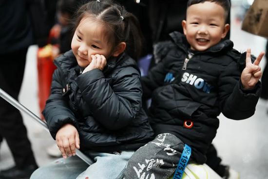 旁邊,兩個小朋友坐在大人的行李箱上,一邊對著我們的鏡頭擺出各種手勢,一邊說:“海邊好玩!高鐵很快!”惹得周圍旅客紛紛投來會意的微笑。