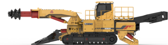 最新推出的SCR630采礦機產品,采用雙截割部結構,機身結構緊湊,開采效率較單截割部提升200%;特殊螺旋槽截割頭,切割效率提升20%,截齒消耗降低20%。特別是在硬度較高的鉀石巖開中,截割能力遠優(yōu)于普通的連采機。