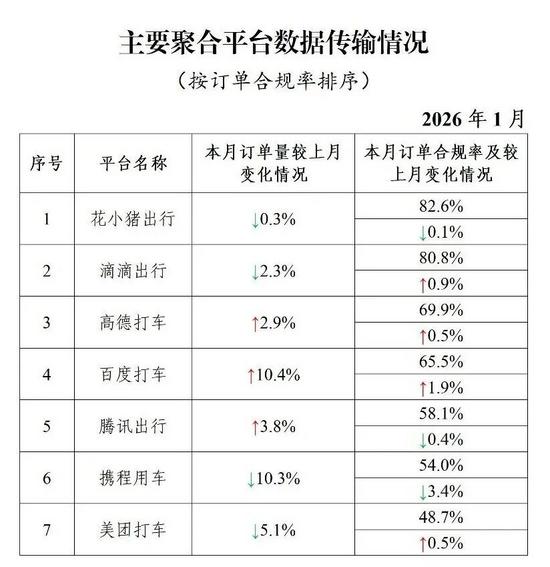 其中,面向乘客、與網(wǎng)約車平臺公司共同提供服務(wù)的平臺(俗稱網(wǎng)約車聚合平臺)完成3.02億單,環(huán)比增長3.4%。按訂單合規(guī)率從高到低分別是花小豬出行、滴滴出行、高德打車、百度打車、騰訊出行、攜程用車、美團打車。