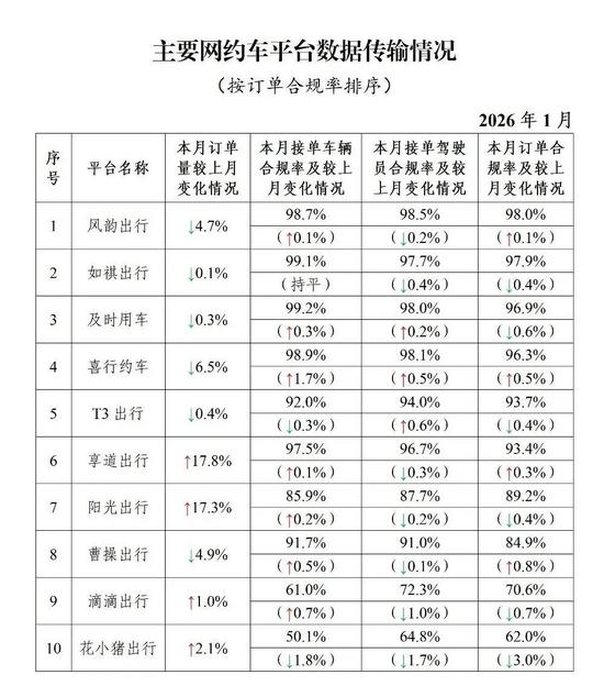 據(jù)網(wǎng)約車監(jiān)管信息交互系統(tǒng)監(jiān)測,截至2026年1月31日,全國共有396家網(wǎng)約車平臺公司取得網(wǎng)約車平臺經(jīng)營許可,較上月增加1家。網(wǎng)約車監(jiān)管信息交互系統(tǒng)1月份共收到訂單信息9.74億單。從本月情況看,有以下特點: