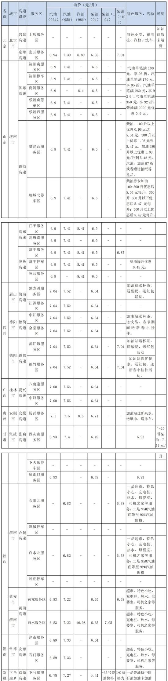 為有效應(yīng)對節(jié)假日車流出行需求,鐵建高速在運(yùn)營的71處服務(wù)區(qū)/停車區(qū)、59座加油站將做好充足的物資準(zhǔn)備,保障節(jié)日供應(yīng)。北京京承高速、興延高速,山東濟(jì)樂高速、德商高速、濟(jì)魚高速,廣西資興高速,四川德都高速、湖南安慈高速、河南蘭原高速、新疆京新高速服務(wù)區(qū)共設(shè)置736個充電槍,可為過往新能源汽車提供快速充電服務(wù)。此外,春節(jié)期間,各地服務(wù)區(qū)將開展特色服務(wù)活動,為過往司乘提供滿意的服務(wù)。