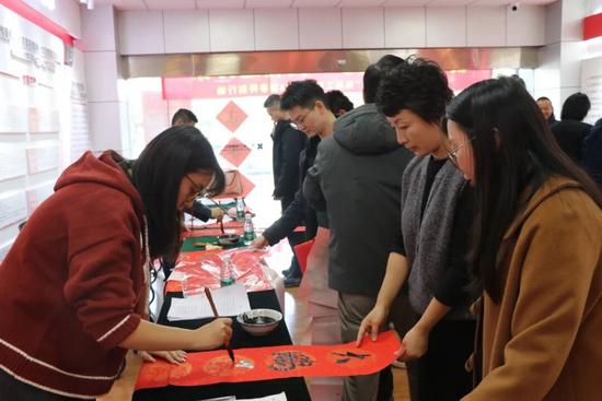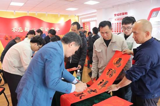 企業(yè)職工們有序駐足、踴躍參與,或精心挑選心儀春聯(lián),或現(xiàn)場定制專屬祝福,捧著墨跡未干的春聯(lián)與福字,喜悅之情溢于言表。