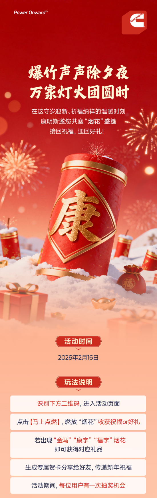 鐵甲工程機械網(wǎng)> 工程機械資訊> 行業(yè) > 除夕一起“康”煙花,新春好禮帶回家!
