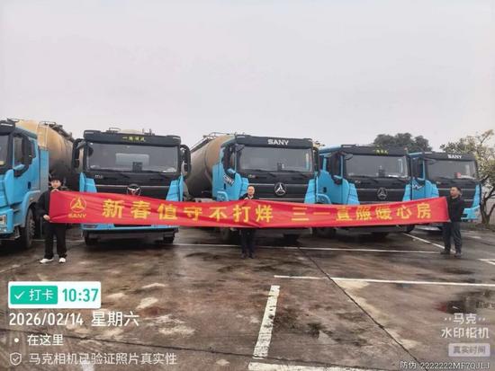 直服無休,春節(jié)無憂。三一電動重卡秉持行業(yè)獨家直服模式,以“駐場駐點+24小時待命+隨時服務(wù)”為工作信條,“堅持工作不斷檔,堅守崗位不松懈”,為客戶運營致富筑牢堅實保障。
