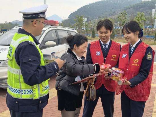 公路運(yùn)營公司南玉珠項(xiàng)目經(jīng)理部聯(lián)合興業(yè)縣公安局交通管理大隊(duì)、交通運(yùn)輸綜合行政執(zhí)法局在葵陽服務(wù)區(qū)開展“情滿旅途 志愿暖冬”志愿服務(wù)活動。暖心禮品、親切問候、春聯(lián)與福字送到司乘手中,贏得群眾好評?;顒右詫?shí)打?qū)嵟e措踐行“便民、暖心、護(hù)安”承諾,著力打造“暢安舒美”通行環(huán)境。